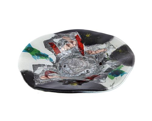 Χειροποίητη γυάλινη πιατέλα από χυτό γυαλί. Διακοσμητική στρογγυλή πιατέλα φτιαγμένη με την τεχνική fusing. Ένα διακοσμητικό επιτραπέζιο αντικείμενο με σαγηνευτικό συνδυασμό χρωμάτων, κατάλληλο και για εξωτερικούς χώρους. Ιδανική πρόταση ως κεντρικό διακοσμητικό για τραπεζαρίες.