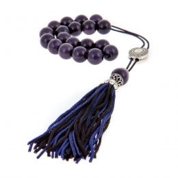 Οι χάντρες σε αυτό το μοντέρνο μπλε κομπολόι χρυσόλιθου είναι φτιαγμένες με στρογγυλό σχήμα μεγέθους 12 χιλιοστών, ο θυρεός και όλα τα μεταλλικά διακοσμητικά στοιχεία είναι από αλπακά, ενώ η φούντα στο τελείωμα είναι από πλεκτό νήμα από μετάξι.
