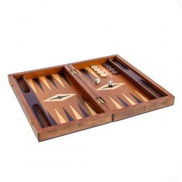 Πολυτελές επιτραπέζιο παιχνίδι τάβλι από φυσικό ξύλο καρυδιάς. Χειροποίητο ξύλινο τάβλι υψηλής ποιότητας με προσεγμένο φινίρισμα όπου κυριαρχούν τα όμορφα νερά του ξύλου. Οι μεντεσέδες, τα κουμπώματα και το χερούλι είναι ορειχάλκινα. Περιλαμβάνονται 2 σειρές πούλια και ζάρια ενώ είναι ιδανικό μέγεθος για ταξίδια.