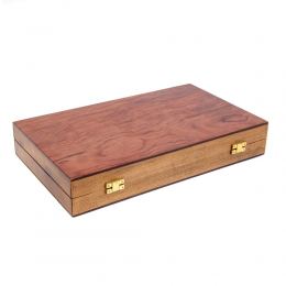 Πολυτελές επιτραπέζιο παιχνίδι τάβλι από φυσικό ξύλο τριανταφυλλιάς. Χειροποίητο ξύλινο τάβλι υψηλής ποιότητας με προσεγμένο φινίρισμα όπου κυριαρχούν τα όμορφα νερά του ξύλου. Οι μεντεσέδες, τα κουμπώματα και το χερούλι είναι ορειχάλκινα. Περιλαμβάνονται 2 σειρές πούλια και ζάρια.