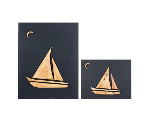 Καράβι από Ξύλο Ελιάς, Μαύρο, Μοντέρνο Διακοσμητικό Τοίχου Σχέδιο Β, 55x70cm