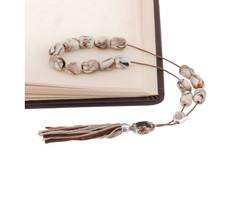 Κομπολόι Εκρού με Νερά από Ρητίνη και Μέταλλο Αλπακά