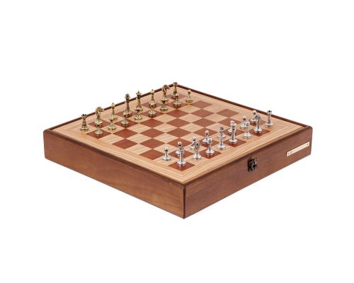 Σκάκι Ελιάς σε Καφέ Ξύλινο Κουτί με Μεταλλικά Πιόνια Κλασσικού Στυλ, 41x41cm