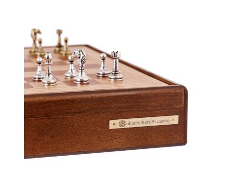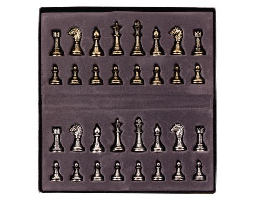 Το Σετ Σκάκι Συμπληρώνουν Ποιοτικά Μεταλλικά Πιόνια (Κλασσικού Στυλ) σε Χρυσό και Ασημί Χρώμα, με Βελούδο στην Βάση τους. (Ύψος Βασιλιά 5cm, Ύψος Στρατιώτη 2.7cm)