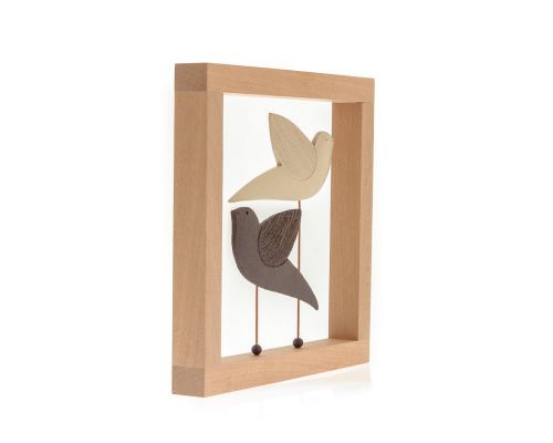 Handmade Modern, Ceramic Birds & Wood Frame, Decor Ornament - Black & Beige